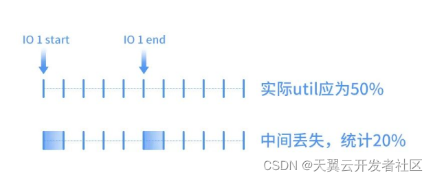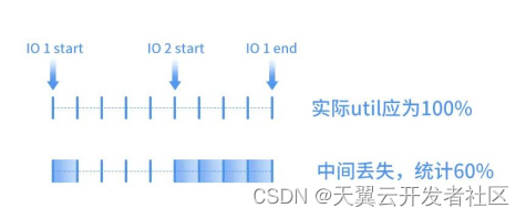 但是这个改进有一个很明显的问题,在存储较快时不会有问题(iops > 1000)。但是在存储较慢时,比如一个IO持续多个jiffies,当IO end的时候经历了多个jiffies,结果也只对io_ticks加1,会导致utils精度丢失很多。