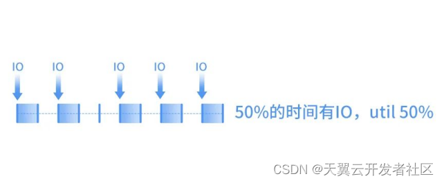 如果时间过去了1s,其中的500ms设备中有IO,io_ticks就会增加500,util就是根据这个算式计算出的:io_ticks/总ticks=500/1000=50%。