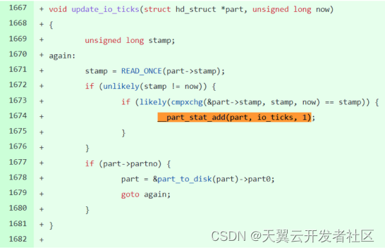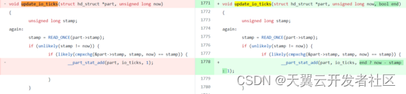 如果为了统计io_ticks,每次都去遍历所有IO,就会影响IO的效率。所以在CentOS 8中,计算io_ticks时抛弃了inflight值,通过每次IO时调用update_io_ticks,如果发现不在同一个jiffies就对io_ticks加1,并将当前时间赋予stamp。