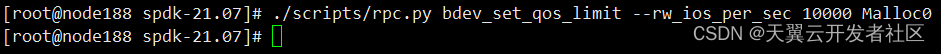 物理机上执行命令bdev_set_qos_limit,把IOPS限制到1W,执行命令如下: