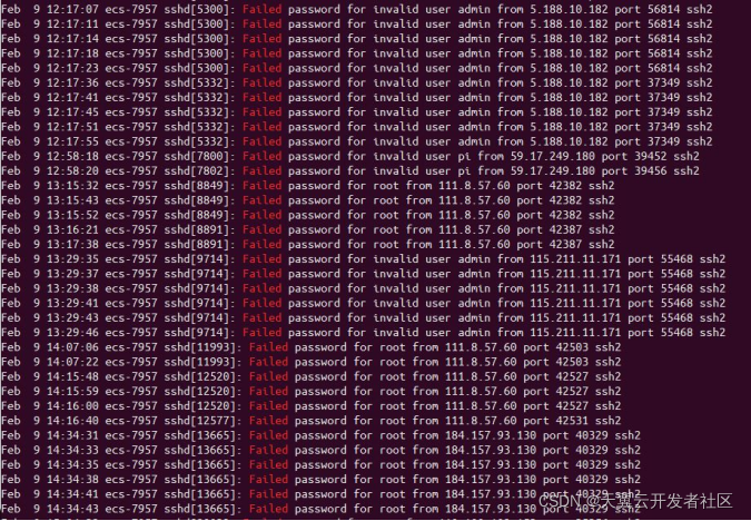 首先看/var/log/secure文件,里面有大量的密码猜测攻击,也包含用户那几次密码输入错误。