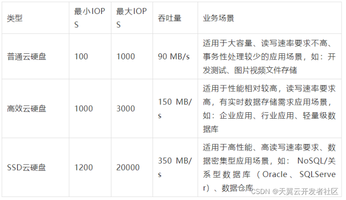 我们用一个表格总结一下三种云盘的参数以及适应场景。