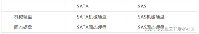 这样机械硬盘、SSD硬盘两种硬盘加上SATA、SAS两种总线,就会组合为四种类型的硬盘。