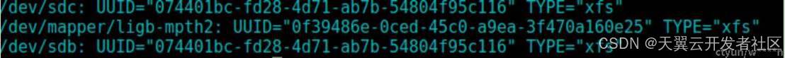配置成功多路径以后,target中的每一块disk都会出现与网关数量相同的/dev路径,例如:配置了两个iscsi网关,并添加了一块disk,那么initiator登陆后会看到/dev下新增两个设备sdb与sdc,并且用blkid查看可以看到两者是有一样的uuid,并且同时只能mount一个设备,如果尝试同时挂载,会提示错误,同时从dmesg中可以看出报错信息是由于两者拥有duplicate的uuid。并且两者实际都是与/dev/dm-0所关联