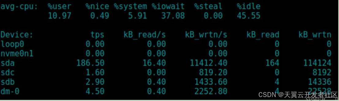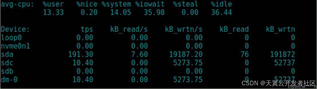 发现dm-0上的io与sdc路径上的io相同,说明此时选取的路径为sdc。(路径组策略为failover)