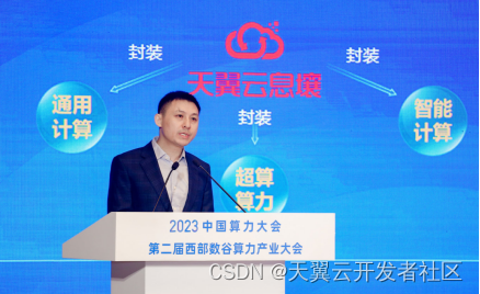 天翼云科技有限公司副总经理黄洪波以“构建强大算力基础,奠定AI时代基石”为题发表演讲。作为云服务国家队,天翼云不断加大关键核心技术自主攻关,积极融入服务国家战略。为响应国家号召,抓住智算新机遇,天翼云打造了从IaaS到SaaS的一体化服务,实现基础设施、算力平台、算力调度和生态服务的全面升级,为千行百业的规模化发展赋能。