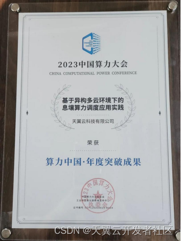 8月18-19日,2023中国算力大会在宁夏银川举办。在大会“年度突破成果”发布环节,中国电信天翼云《基于异构多云环境下的息壤算力调度应用实践》荣获2023中国算力大会“算力中国·年度突破成果”奖,天翼云算力分发网络平台“息壤”的智能高效算力调度能力再次获得权威认可。