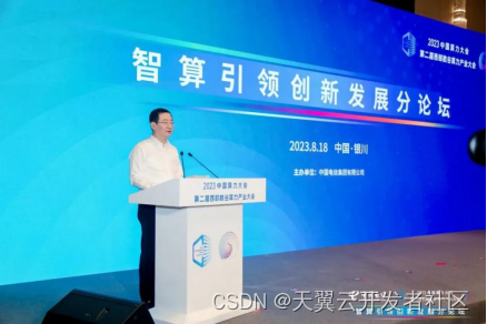 与大会同期召开的2023年中国算力大会“智算引领创新发展”分论坛,邀请“产、学、研、用”各领域专家学者、行业权威及相关企业代表,共同围绕算网融合、算力强基、算力赋能等热门算力议题,从技术、产品、创新、应用等多个维度,展开交流碰撞、分享前沿智慧、共话行业生态、共谋算力发展。宁夏回族自治区人民政府副主/席刘军、工业和信息化部信息通信发展司一级巡视员刘郁林、全球云网宽带产业协会(WBBA)首届董事会主/席李正茂、中国电信副总经理栾晓维致辞,清华大学电子工程系主任汪玉、天翼云科技有限公司副总经理黄洪波发表演讲。
