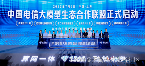 为拓展大模型战略布局,构建更丰富的人工智能合作生态,论坛上,中国电信数字智能科技分公司与中国职协、公安部第三研究所、中国信通院云计算与大数据研究所、上海人工智能实验室、中国健康养老集团有限公司、中国民生银行信用卡中心、商汤科技、华为昇腾计算业务等企业举行中国电信大模型生态合作联盟启动仪式,期待与领军企业、科研院校等通过资源共享、技术交流、应用场景拓展和生态合作,共同促进大模型研发和应用落地,推进人工智能产业升维发展。