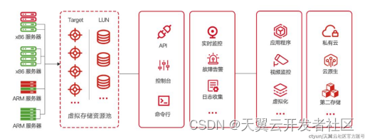 天翼云存储资源盘活系统支持多元应用场景,能够满足不同行业、不同领域客户的差异化业务需求,帮助客户快速部署业务,实现降本增效。