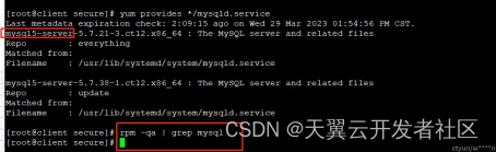 12. yum provides */文件或命令:文件或者命令属于哪个包提供,即使未安装该包也能查询。如下图显示未安装mysql但可以查询到mysqld.service是由该包提供
