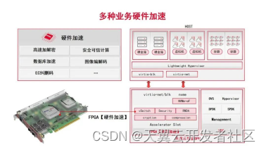 天翼云紫金DPU采用SOC+FPGA架构,依托FPGA强大的处理性能和灵活的可编程能力,对多种应用进行加速。