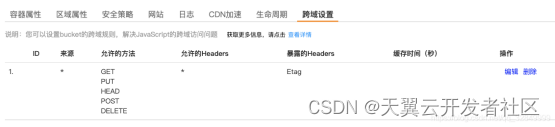 • 将暴露的 Headers:设置成: ETag 注意:请将该条 CORS 规则设置成所有 CORS 规则的第一条
